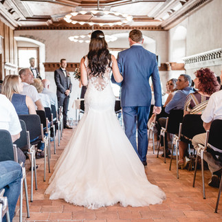 Die beiden haben sich dazu entschieden, den First Look – den Moment an dem sich das Paar zum ersten Mal sieht – nicht erst bei der Trauung zu machen. Wir konnten den Moment an dem Ort zelebrieren, an dem der Heiratsantrag damals stattgefunden hat. Ein First Look hat den Vorteil dass das Brautpaar diesen besonderen Moment auskosten und geniessen kann. In der Kirche oder beim Standesamt bleibt dazu viel zu wenig Zeit. Für uns als Fotografen ist dieser Moment mit einer der emotionalsten des Tages und somit definitv ein Lieblingsmoment den wir allen Paaren sehr ans Herz legen können. Direkt im Anschluss haben wir die Zeit genützt und noch ein paar Paarfotos gemacht. Noch ein zweiter Vorteil – so gibt es direkt schon einige schöne Portraits bei denen Make-up und Haare noch ganz frisch sind.